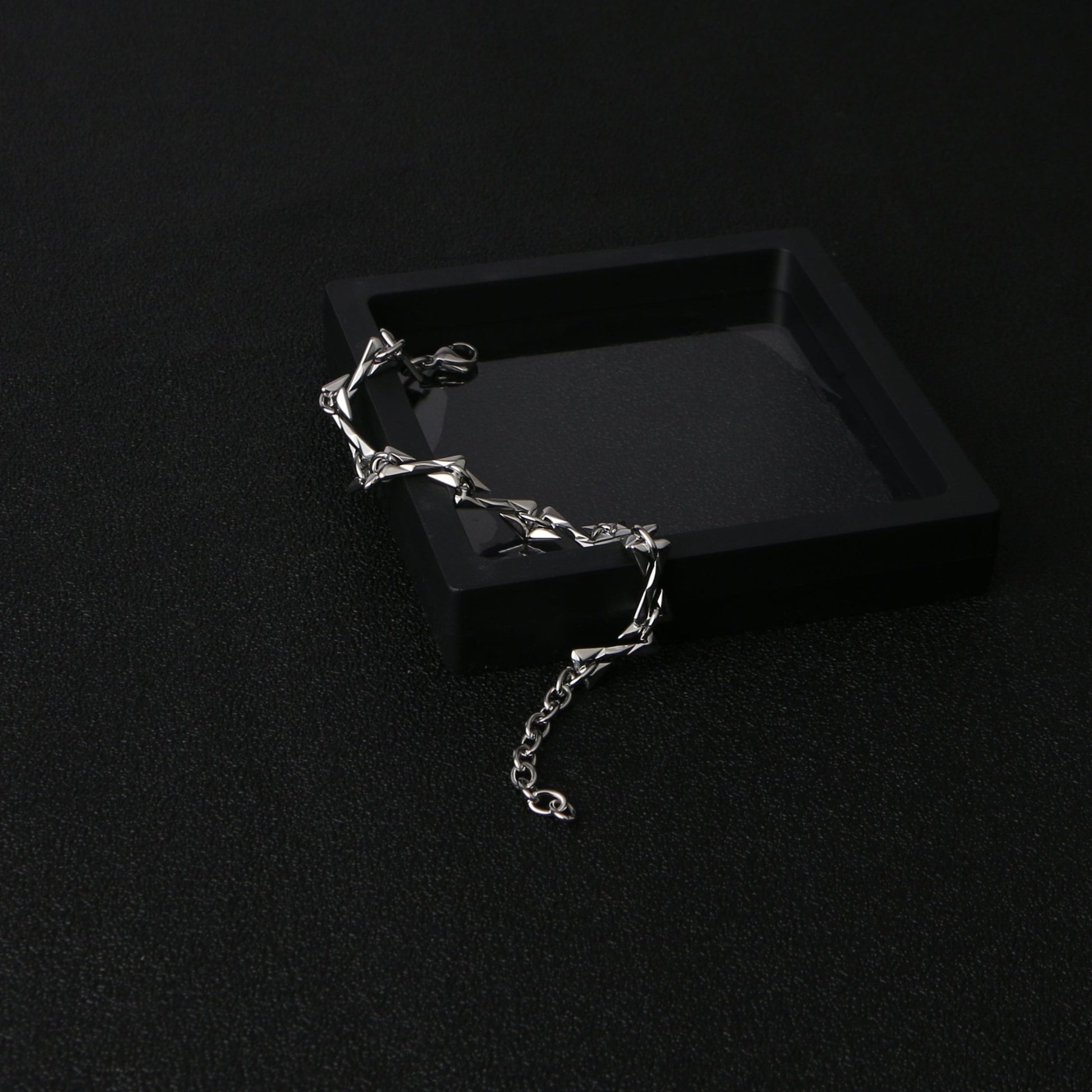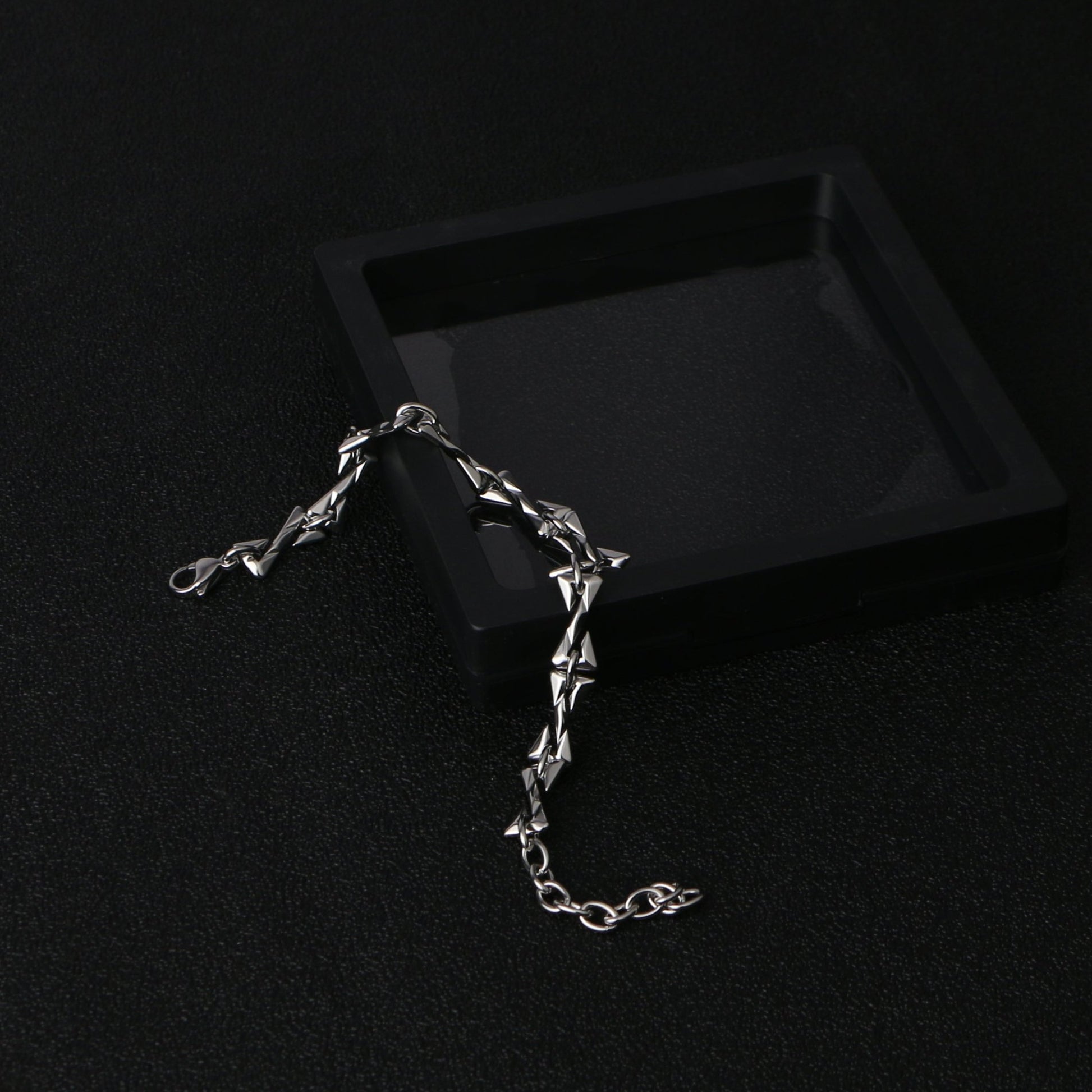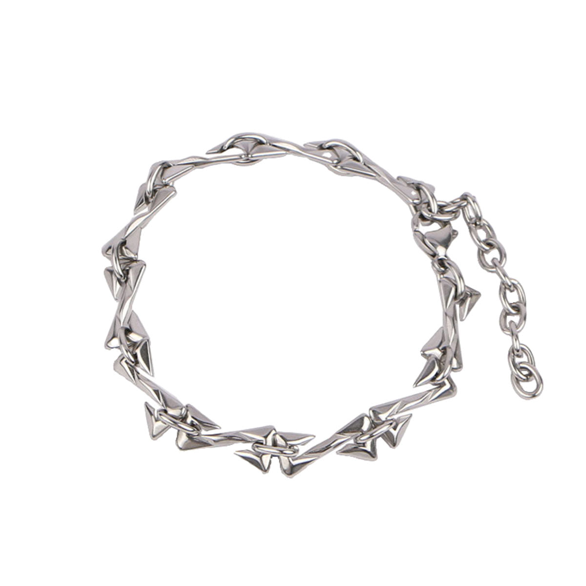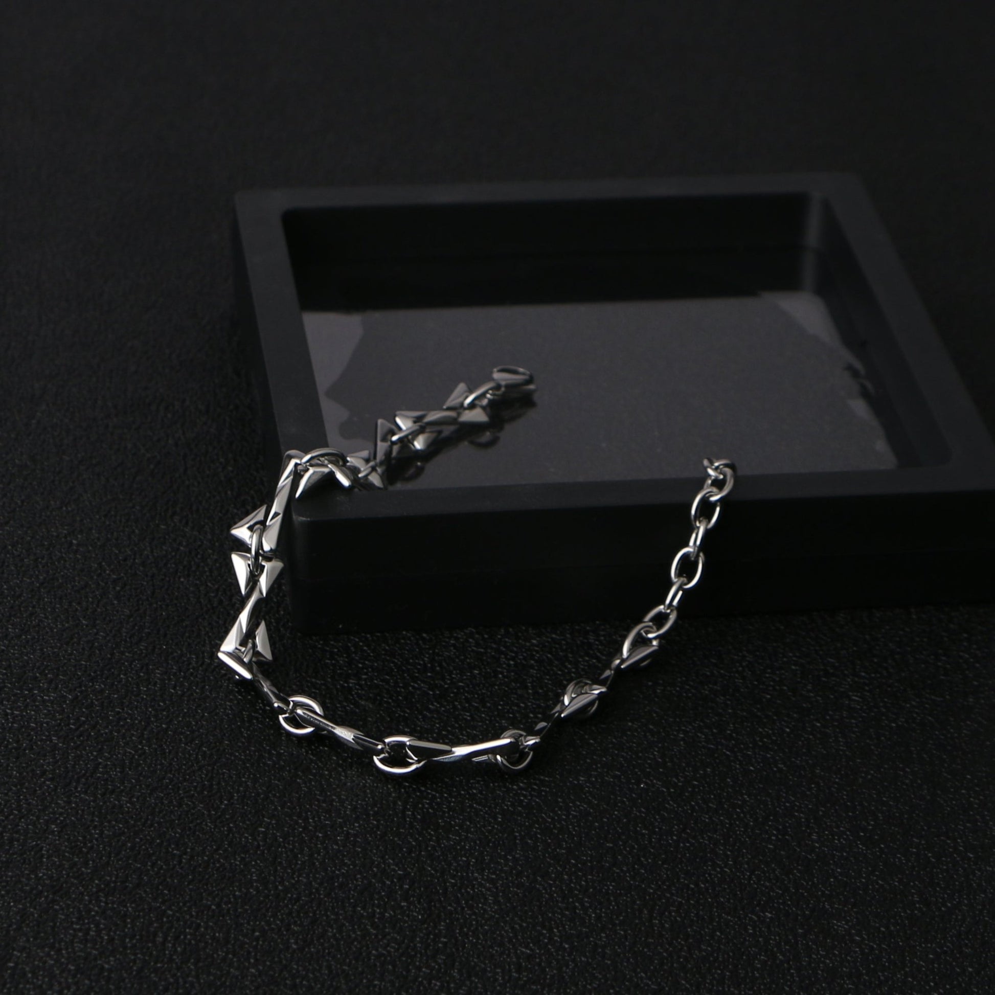 The Blade Link Bracelet is a bold and striking accessory designed for those who appreciate edgy, modern style. Crafted from high-quality stainless steel, this bracelet features a unique chain-link design with sharp, angular, blade-like accents that give it a distinctive and powerful look.
