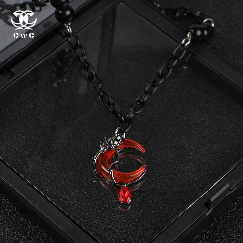 Step into the shadows with the Blood Moon Eclipse Necklace — a bold fusion of gothic mystery and celestial symbolism. Featuring a deep red crescent moon embraced by dark metallic claws and finished with a crimson teardrop gem, this pendant captures the eerie beauty of a lunar eclipse.