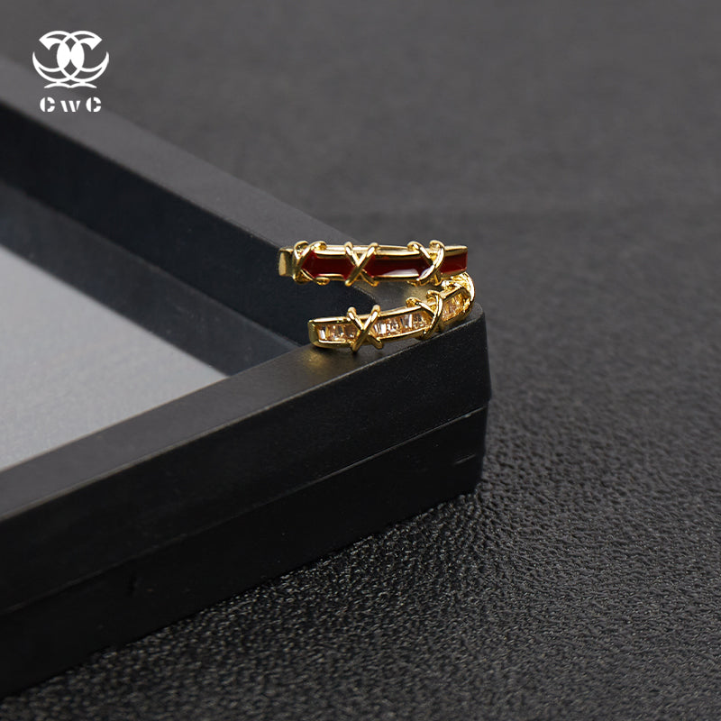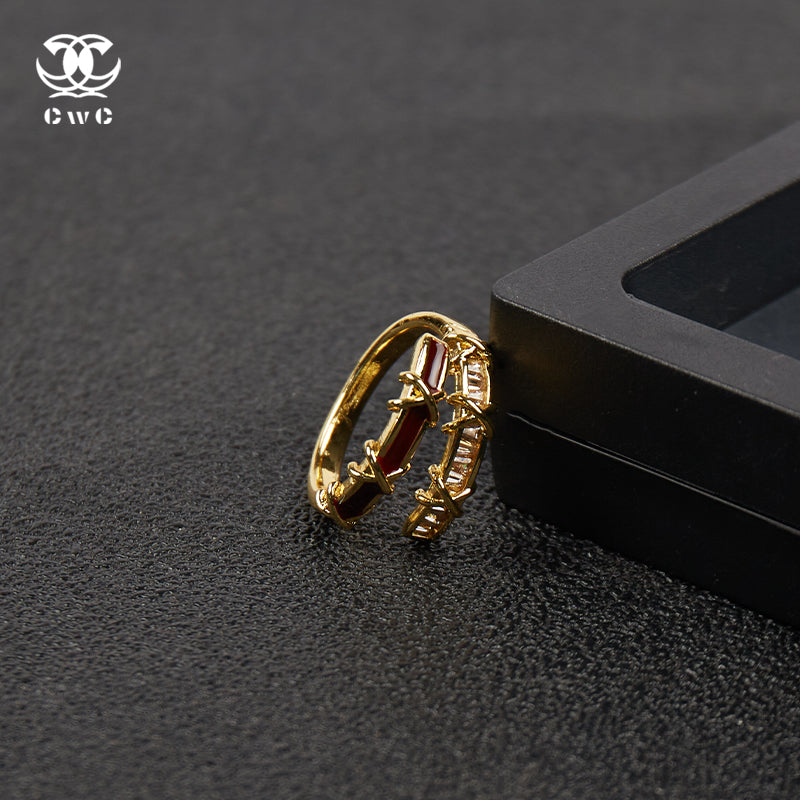 The Crimson Crossfire Ring is a bold open-wrap design that commands attention from every angle. Featuring a striking crimson enamel accent contrasted against a sleek silver-tone finish, this piece captures modern confidence with a refined edge.