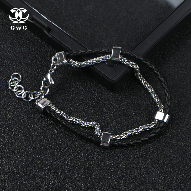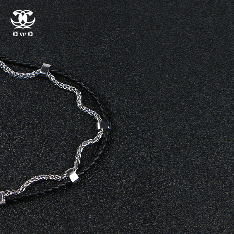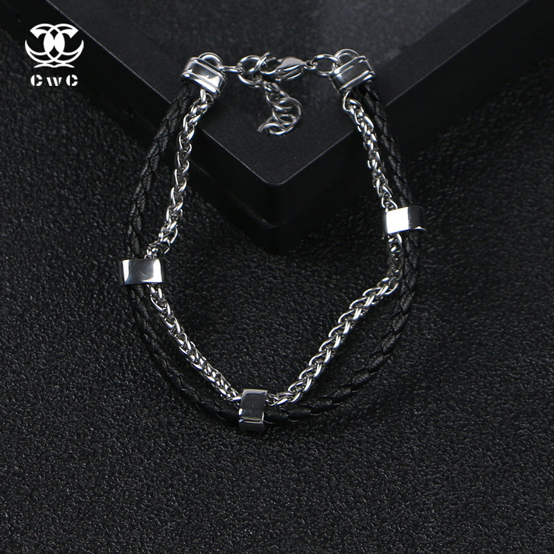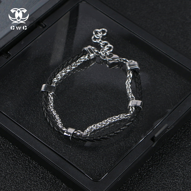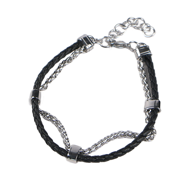 The Dual Core Link Bracelet is a bold fusion of contrast and craftsmanship. Featuring braided black leather cords paired with sleek stainless steel chain links, this piece brings together rugged texture and polished edge in one unified design.