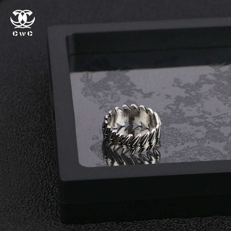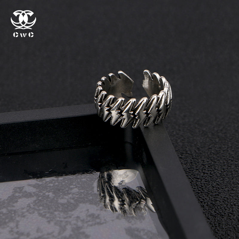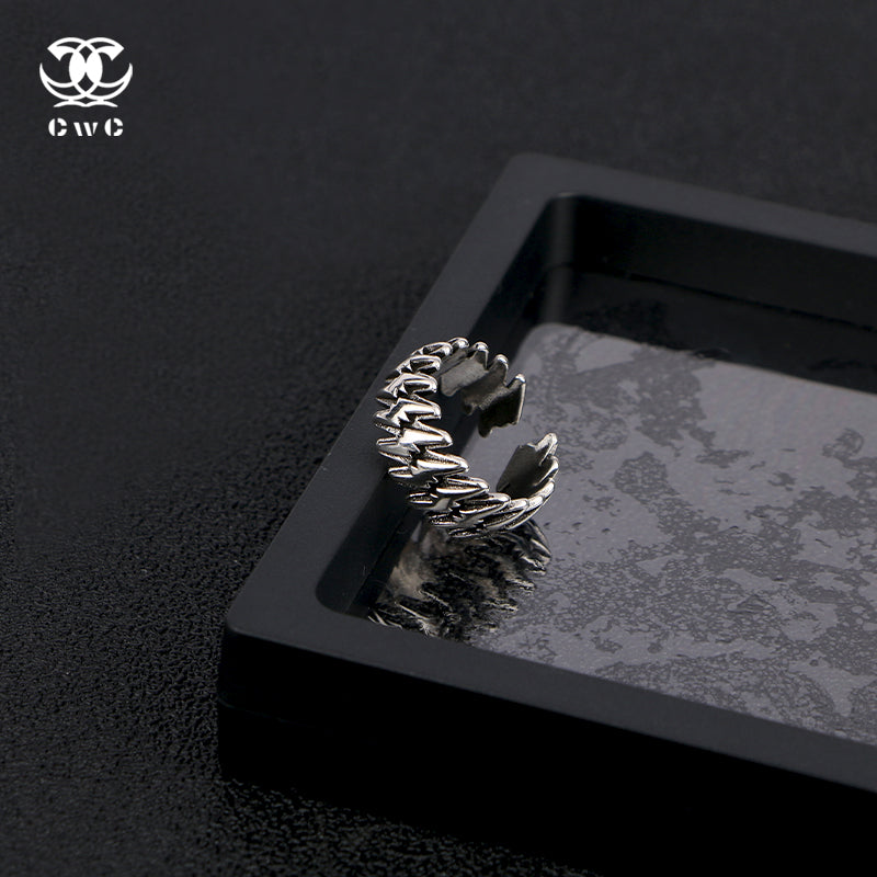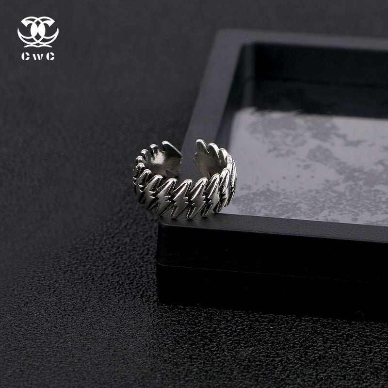 Designed with an open-ended, adjustable band, this ring ensures both comfort and versatility while maintaining its rugged, high-impact aesthetic. Its unique, textured detailing enhances the fierce and rebellious nature of the piece, making it an ideal accessory for those drawn to rock, punk, or gothic-inspired jewelry.