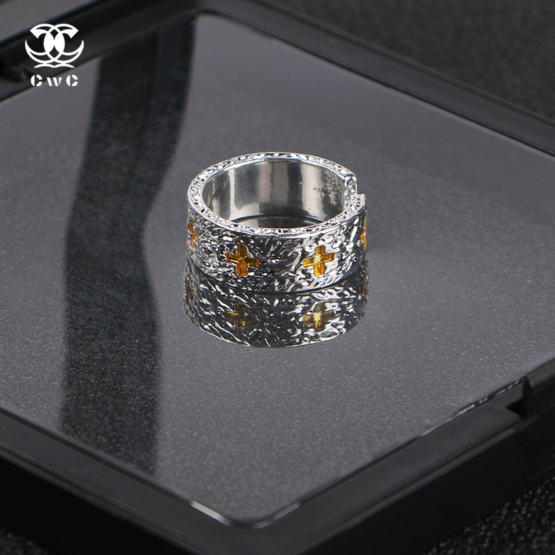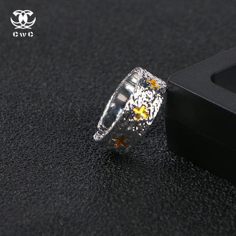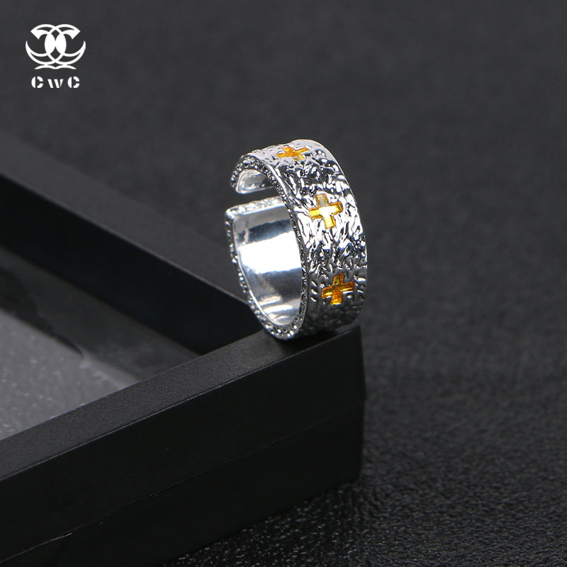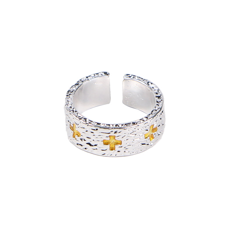 The Golden Cross Relic Ring is a bold fusion of sacred symbolism and antique design. Featuring intricately carved textures with gold-tone cross inlays, this piece evokes the feel of a treasured ancient artifact. The wide-band design makes a powerful statement, while the open-end structure allows for easy size adjustment, offering a comfortable and flexible fit for most fingers.
