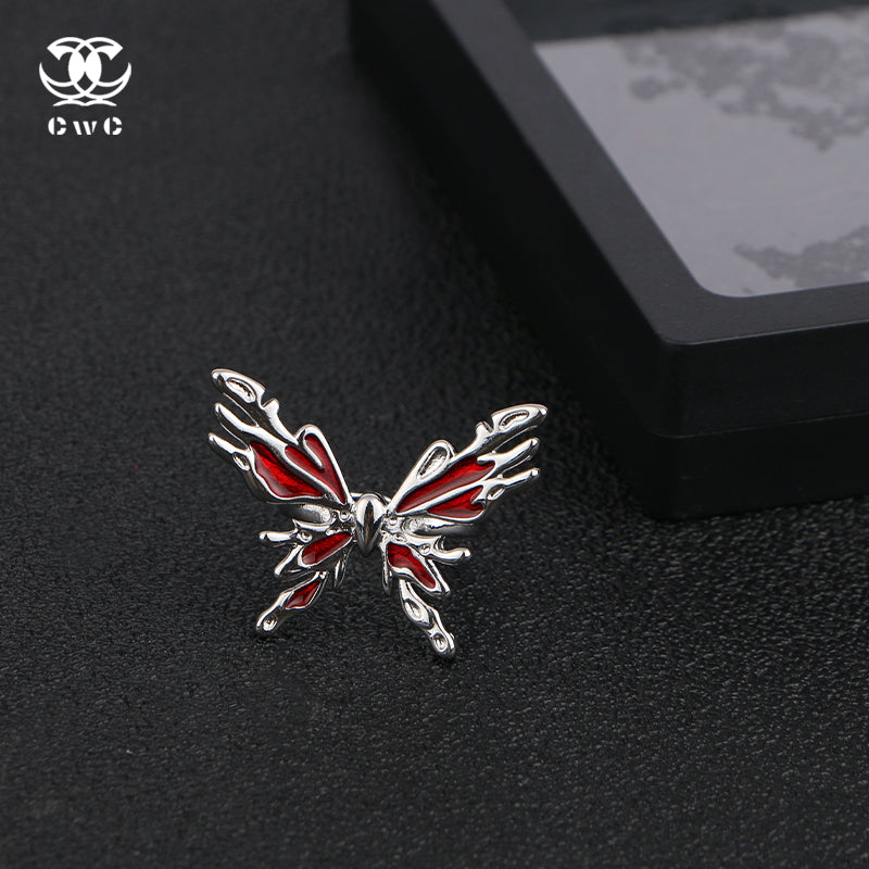 The Crimson Wing Ring is a striking statement piece that embodies elegance, transformation, and bold beauty. Featuring an intricately designed butterfly motif, this ring showcases delicate, flame-like wings crafted from polished silver-toned metal, accentuated with deep crimson enamel that adds a fiery, dramatic touch.