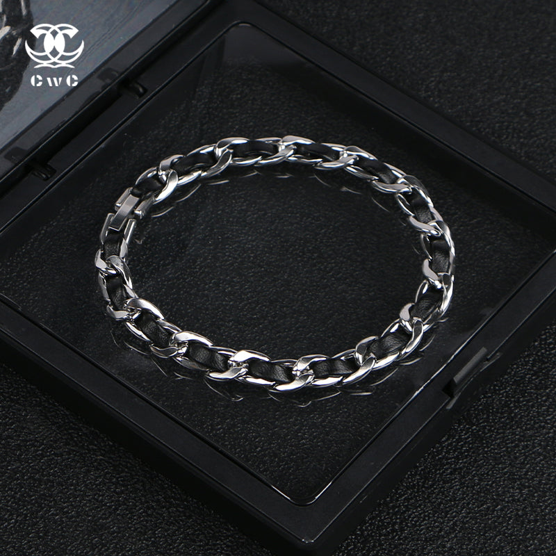 The Ironbound Leather Chain Bracelet is a bold fusion of strength and style. Featuring a classic curb chain design interwoven with black leather, this piece balances rugged masculinity with refined craftsmanship. Made from durable titanium steel, it’s resistant to rust, tarnish, and everyday wear—perfect for those who live with edge and intention. Length: 20cm