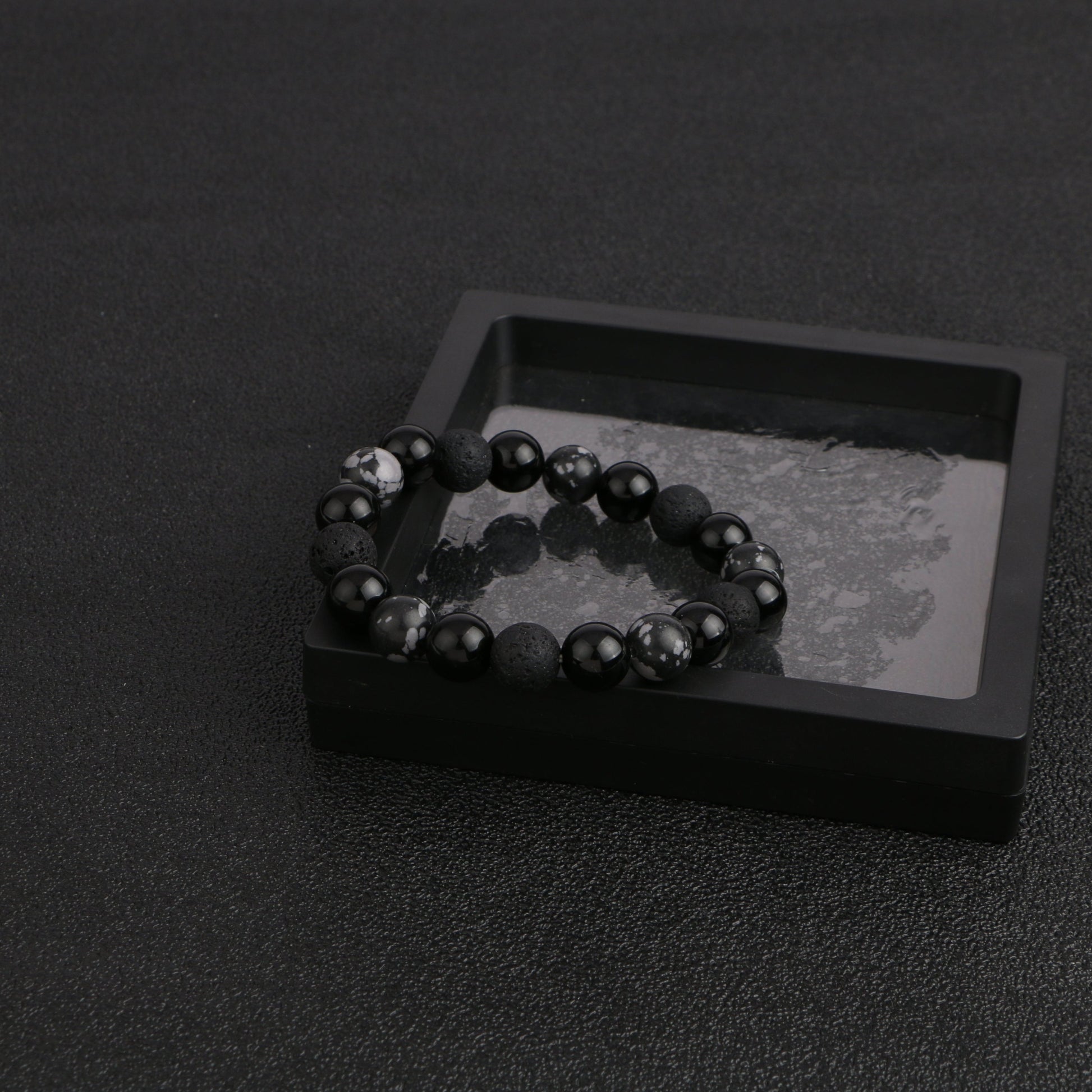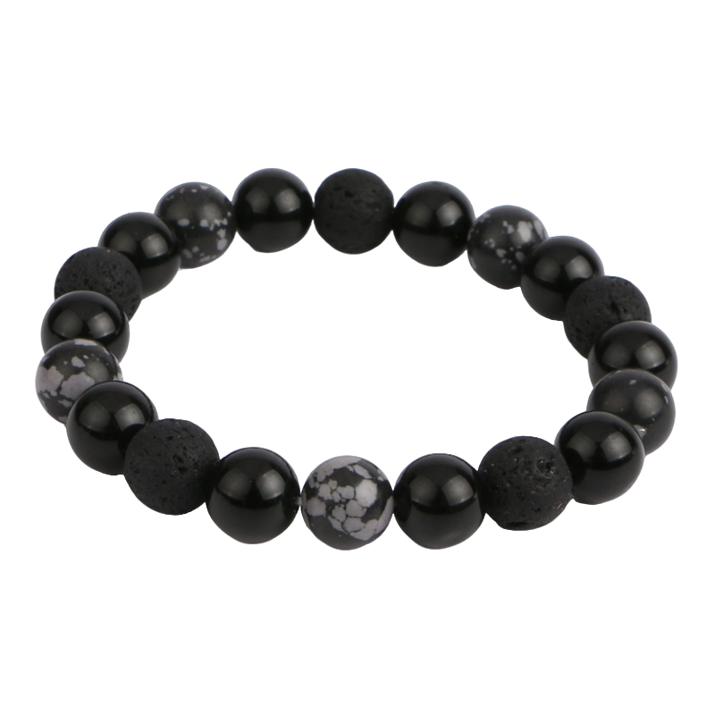 Embrace the mysterious allure of the Midnight Stone Bracelet, a striking accessory crafted from genuine black obsidian. This bracelet features a harmonious blend of polished black obsidian beads and speckled accent stones, creating a sleek and sophisticated look. Black obsidian, known for its protective and grounding properties, adds a touch of elegance and depth to this piece. Measuring 8.3 inches in length.