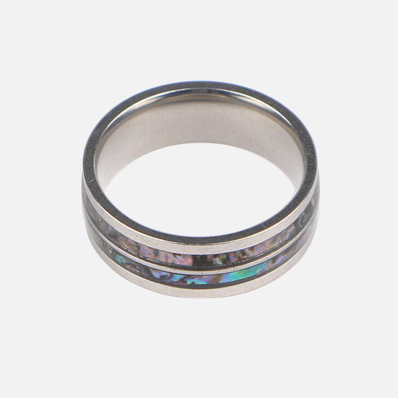 Dive into refined detail with the Ocean Prism Band, a sleek stainless steel ring accented by a mesmerizing inlay of iridescent shell. Reflecting shades of deep blue, green, and pearl, this piece captures the ever-changing beauty of the ocean in a polished, modern silhouette. Lightweight yet eye-catching, it’s perfect for everyday wear or adding a touch of coastal cool to your look. Whether worn solo or stacked, this ring brings depth, style, and just the right amount of shimmer to any fit.