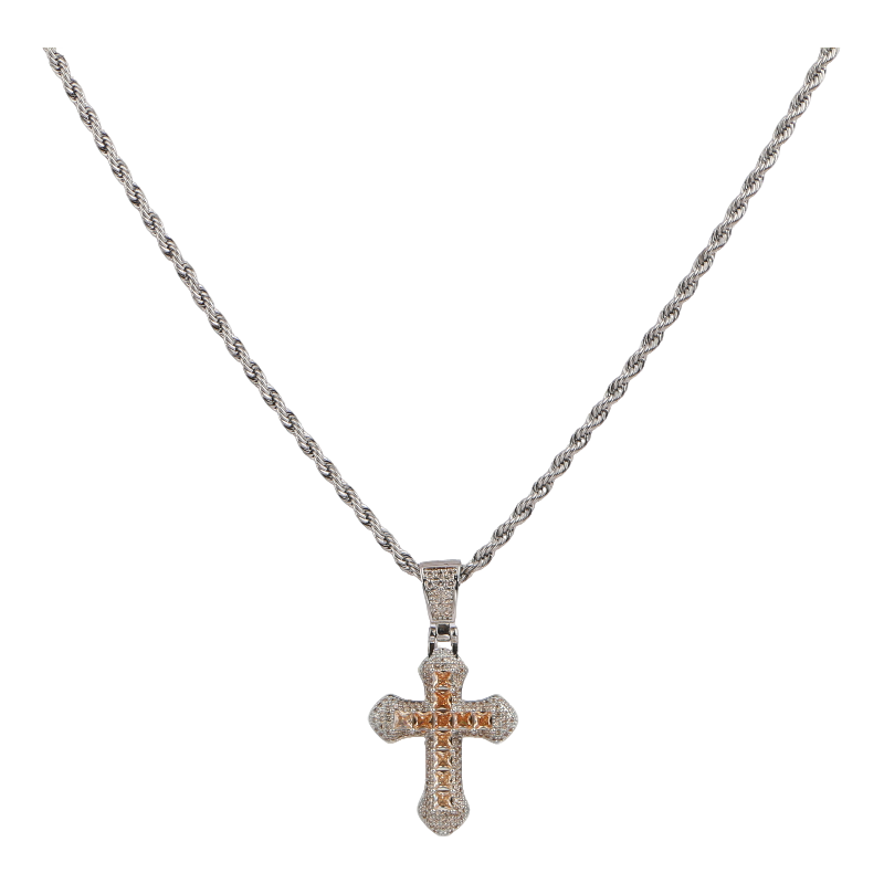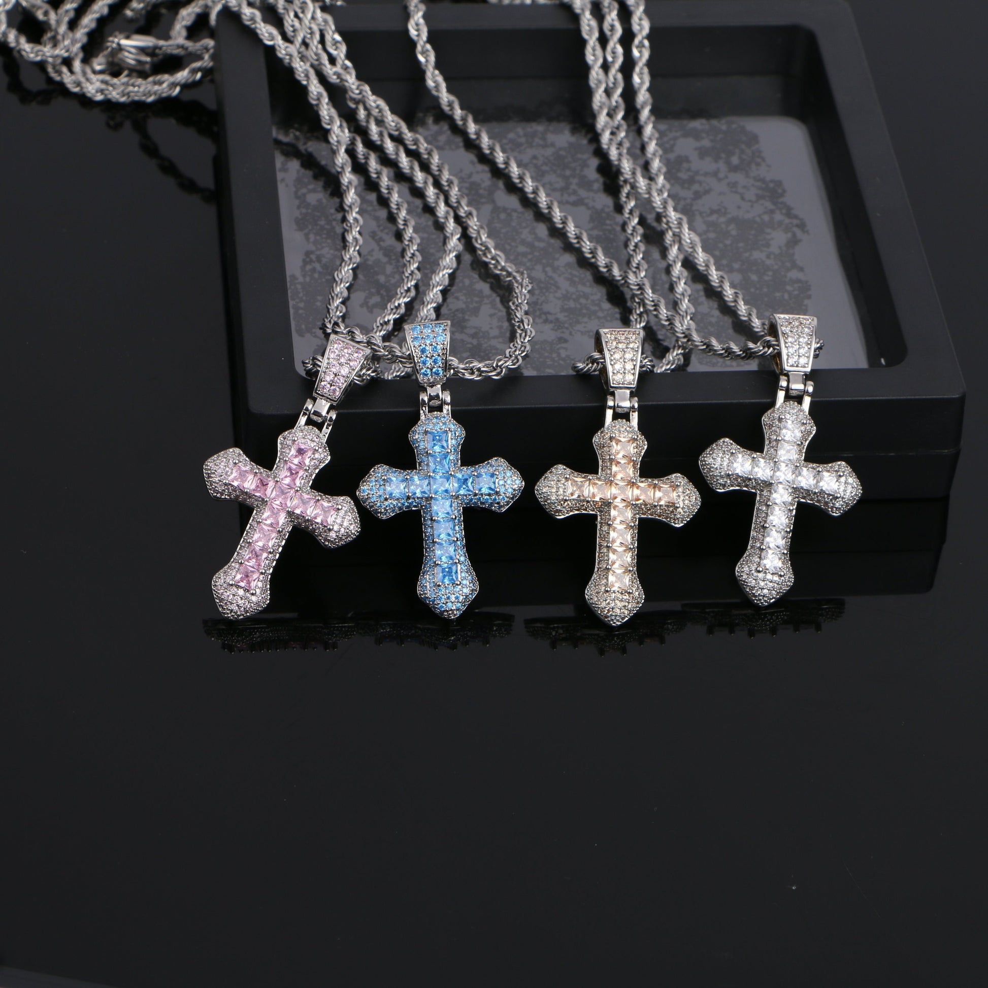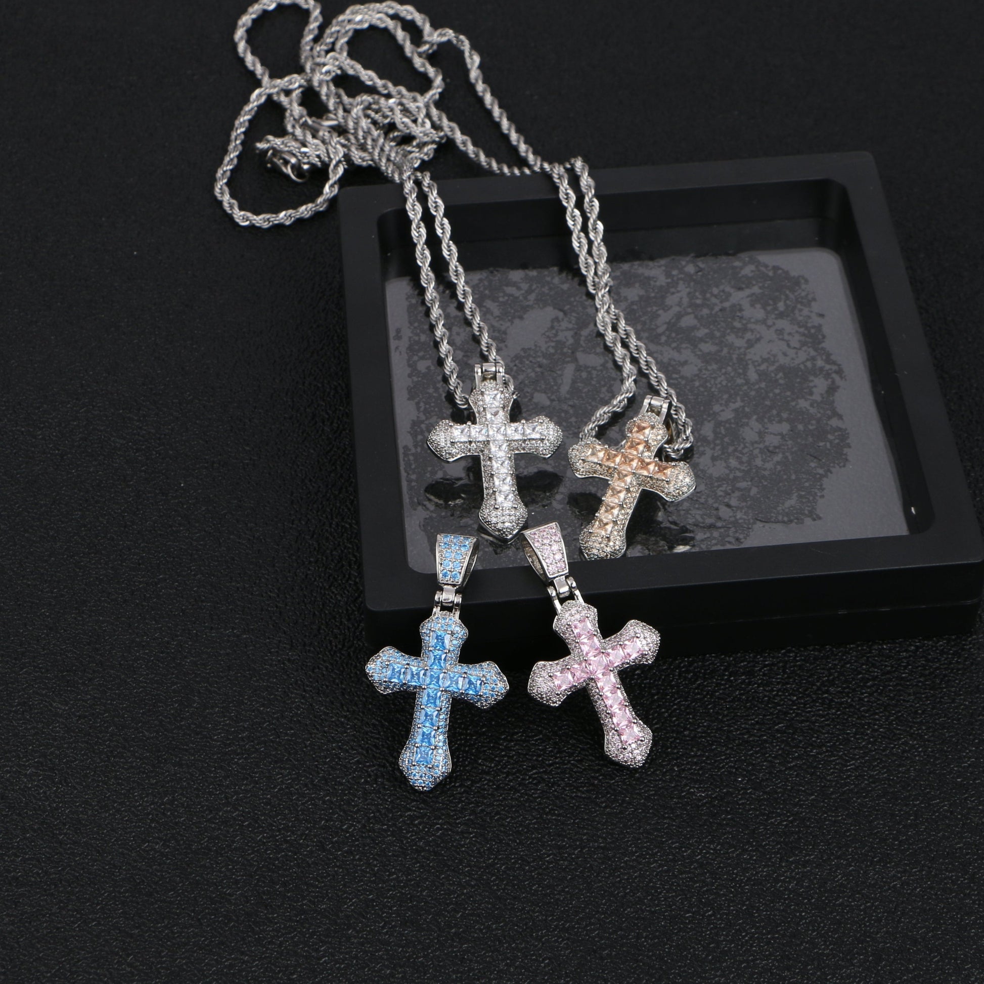 A dazzling and meaningful accessory crafted from premium titanium steel. Each necklace features a beautifully designed cross pendant, encrusted with shimmering crystals in various colors, including pink, blue, champagne, and clear. The intricate detailing and vibrant gemstones give this piece a brilliant sparkle, making it perfect for adding a touch of elegance to any outfit. Length: 70 CM
