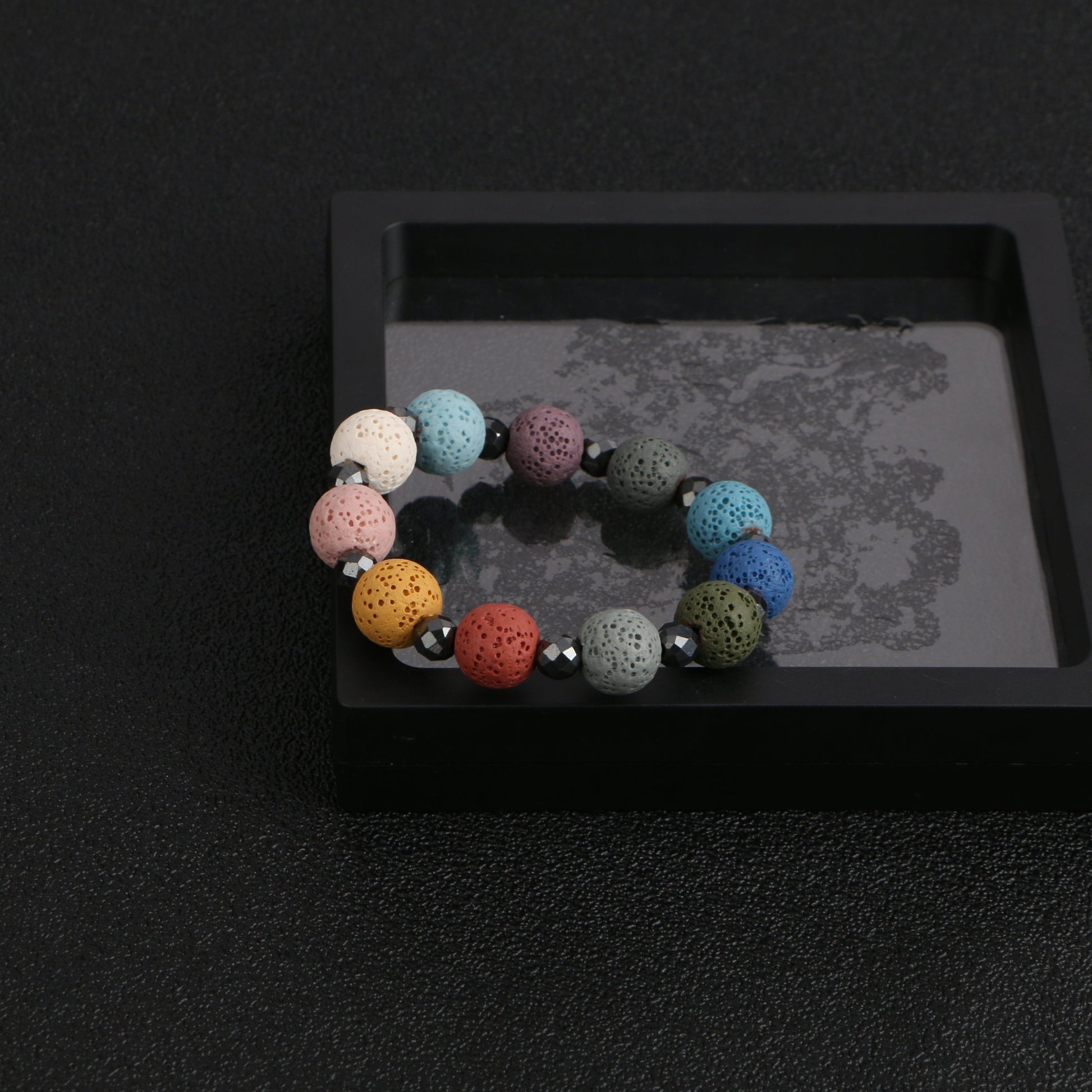 Add a splash of color to your style with the Rainbow Lava Stone Bracelet, a vibrant and eye-catching accessory crafted from genuine lava stones. This bracelet features an array of colorful lava stone beads, each showcasing the natural, porous texture characteristic of lava stones. Known for their grounding properties, these lava stones are both lightweight and durable, making this bracelet perfect for everyday wear.