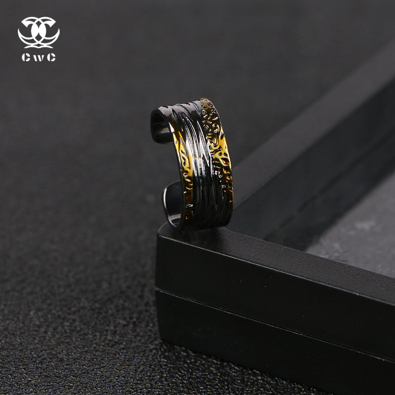 Unleash elemental style with the Shadowforge Ring, where molten gold collides with deep obsidian black in a design that feels both ancient and futuristic. Intricate textures mimic forged metal, while the split-tone finish gives it a raw, sculptural edge. Bold yet refined, this open-band ring wraps your finger like armor — a wearable symbol of strength, rebellion, and refined chaos. Whether paired with streetwear or elevated fits, it’s the kind of piece that sparks conversations without saying a word.