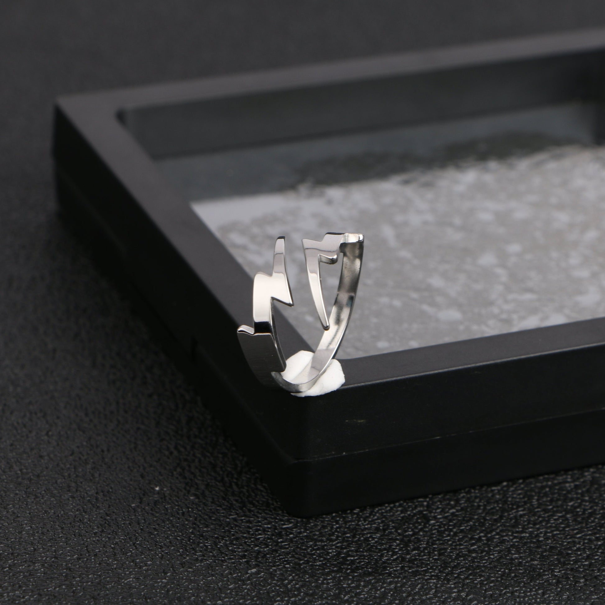 A dynamic accessory crafted from premium titanium steel. This ring features a bold, jagged lightning bolt design that wraps around your finger, creating a striking and edgy look. The robust titanium steel construction ensures exceptional durability and resistance to tarnish, making it perfect for everyday wear. The Thunderbolt Ring’s unique design captures the essence of strength and energy, making it an ideal statement piece for those who dare to stand out.
