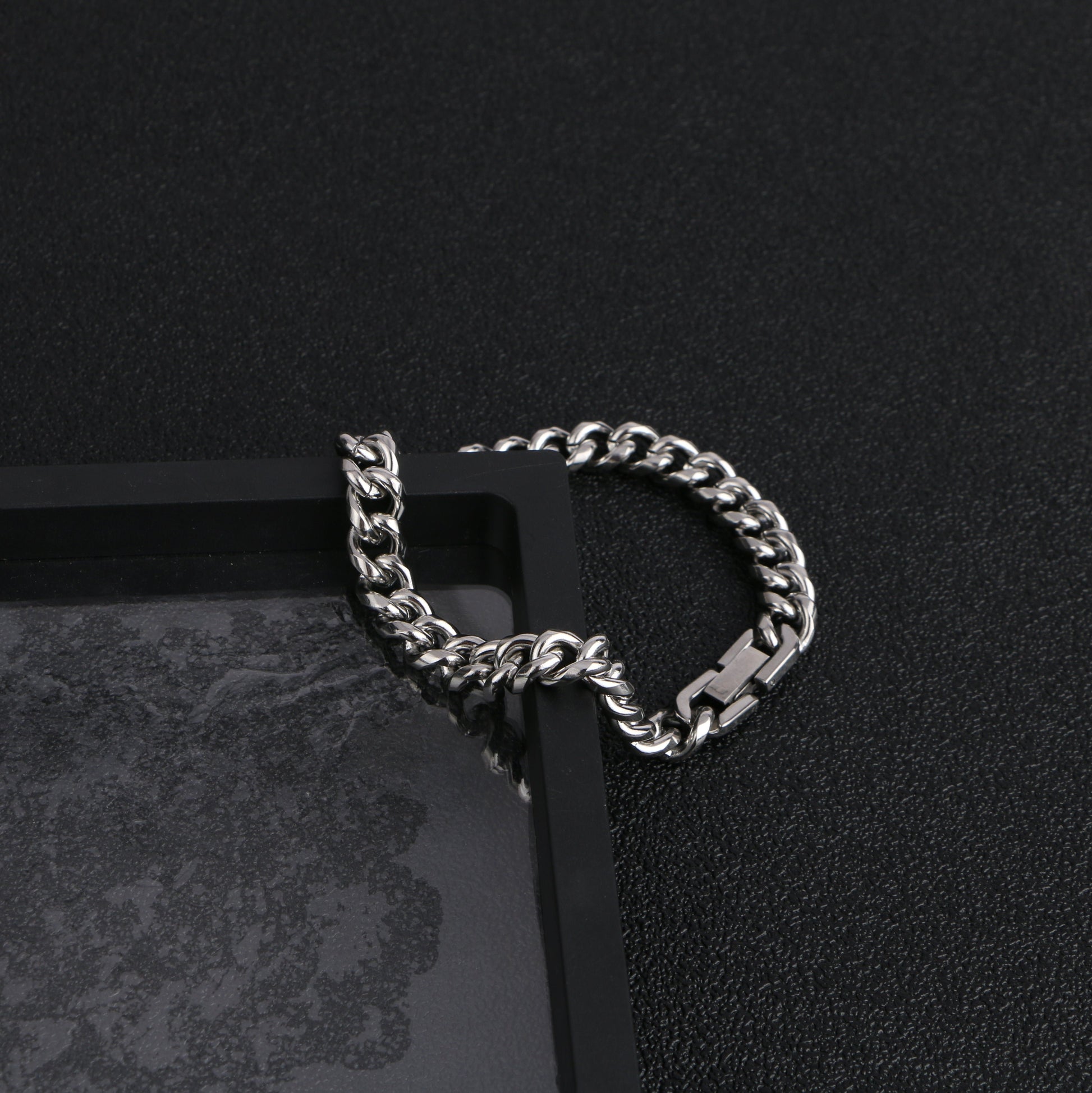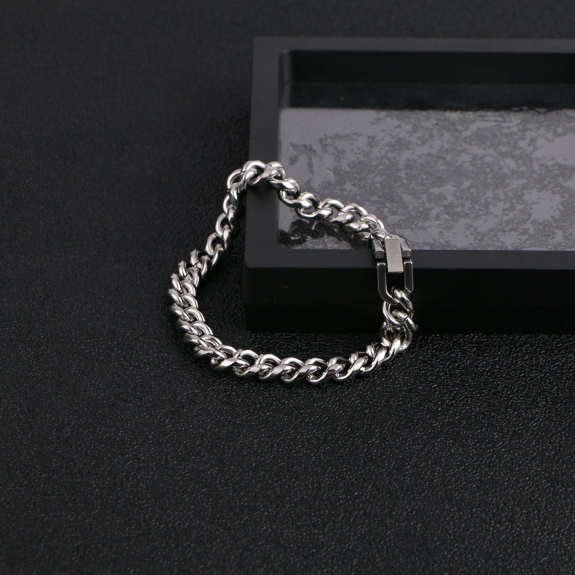 A bold and durable accessory crafted from premium titanium steel. This bracelet features a distinctive twisted chain design, creating a look that is both rugged and sophisticated. The robust titanium steel construction ensures exceptional durability and resistance to tarnish, making it perfect for everyday wear. The secure clasp adds both functionality and style, ensuring that the bracelet stays firmly in place.